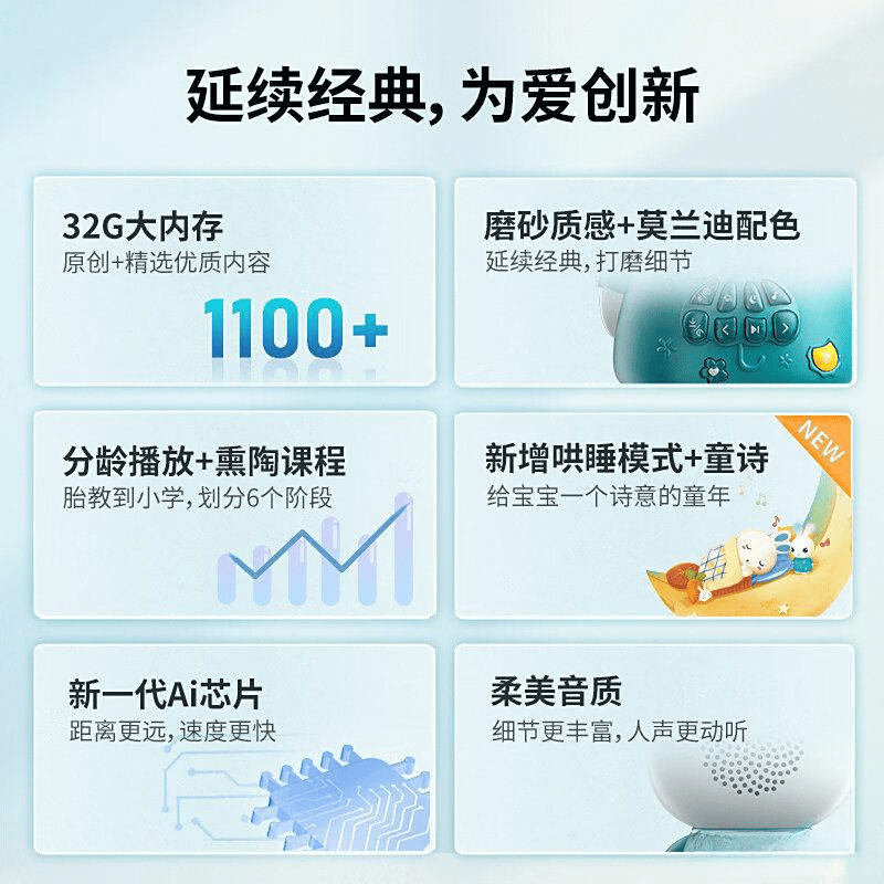 蓝牙5。1尺度带来的不变毗连,确保声音清晰且无延迟,让孩子们尽情享受每一曲漂亮旋律或寓教于乐的故事,沉浸正在有声世界中的奇奥路程。