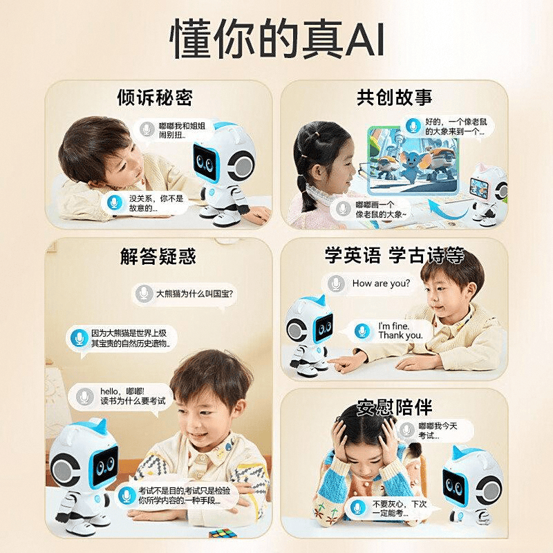 内置的语音问答功能让孩子取机械人展开风趣对话,加强进修的自动性。如许的互动体例不只激发了孩子的求知欲,也使进修成为一种享受。