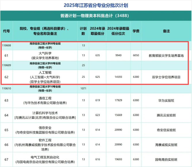 从2024年江苏省本科批物理类登科数据来看,南信大登科分数线的第一梯队聚焦王牌学科取交叉融合项目,此中大气科学拔尖学生培育班以635分的最低登科分位居榜首。该校大气科学学科正在教育部学科评估中获评A+,持续多年位列软科世界一流学科亚洲第一,其拔尖班配备院士、教育部特聘传授等顶尖导师,还专设留学基金支撑国际交换取科研实践,为学生搭建了通往学科前沿的平台。紧随其后的人工智能+大气科学双学士学位培育项目,以625分的最低登科分、14593名的最低位次稳居第一梯队,该项目融合两大抢手范畴劣势,课程笼盖人工智能算法、大气探测手艺等焦点内容,结业生既能胜任景象形象数据智能阐发,就业适配性极强,成为高分考生跨界成长的优选。